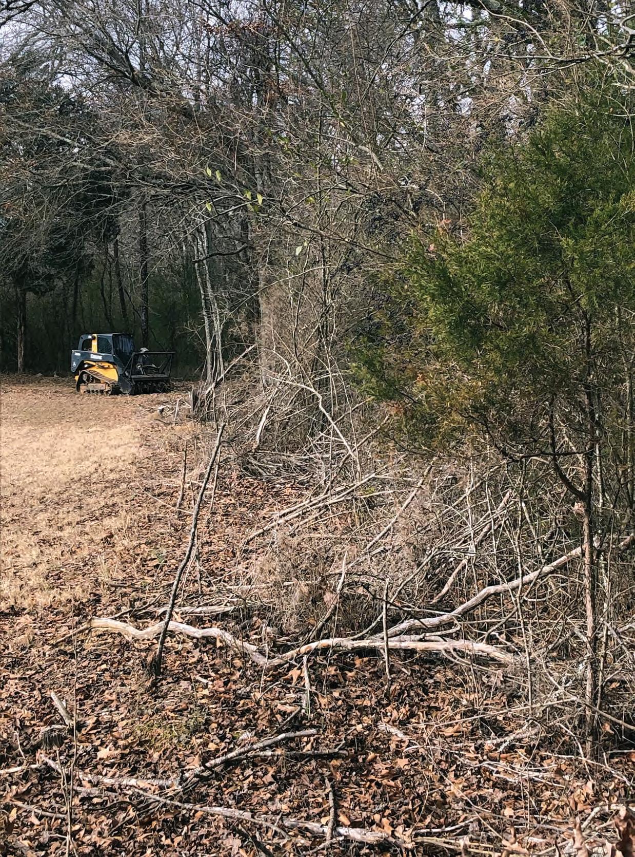 Payne Land Preparation, LLC is a family owned and operated company. We use a John Deere 333D track loader with a 5’ wide rotating drum mulching head that has carbide teeth for mulching brush, vegetation and up to 6” diameter trees.