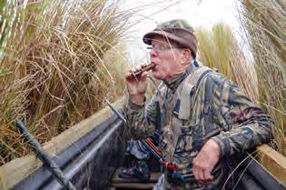 floating on pontoons, nearly 50 years earlier and hunted in it every winter since then. Chicken wire walls raised to the height of a man’s eyes held pine and cypress branches covered in Spanish moss and other plant material for camouflage. A plywood roof partially covered the backside, providing some shelter from the elements. Four hunters could stand, giving each one ample room to shoot. Two benches offered comfort. A small heater kept the biting chill at bay.