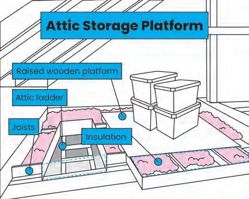Building an attic storage platform offers extra storage space and helps maintain the energy-efficiency of the attic with insulation underneath it.