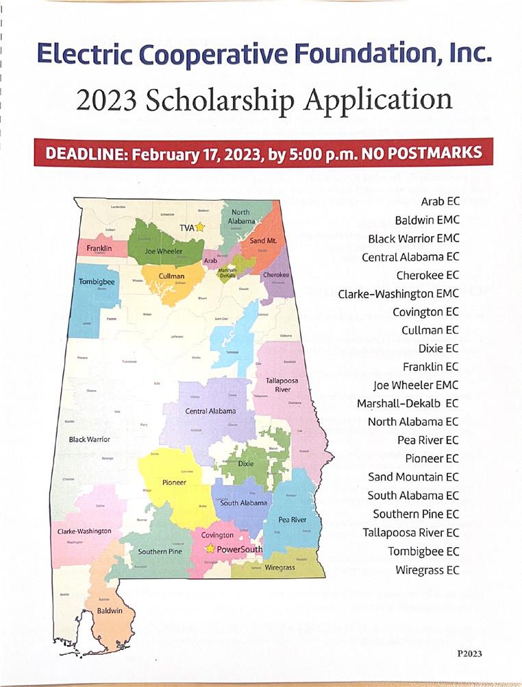 The Electric Cooperative Foundation, Inc. was created in 1997 by the electric cooperatives of Alabama. In an effort to give back to the communities they serve, electric co-ops are providing scholarships for post-secondary and vocational education to accredited institutions for qualifying high school seniors.
