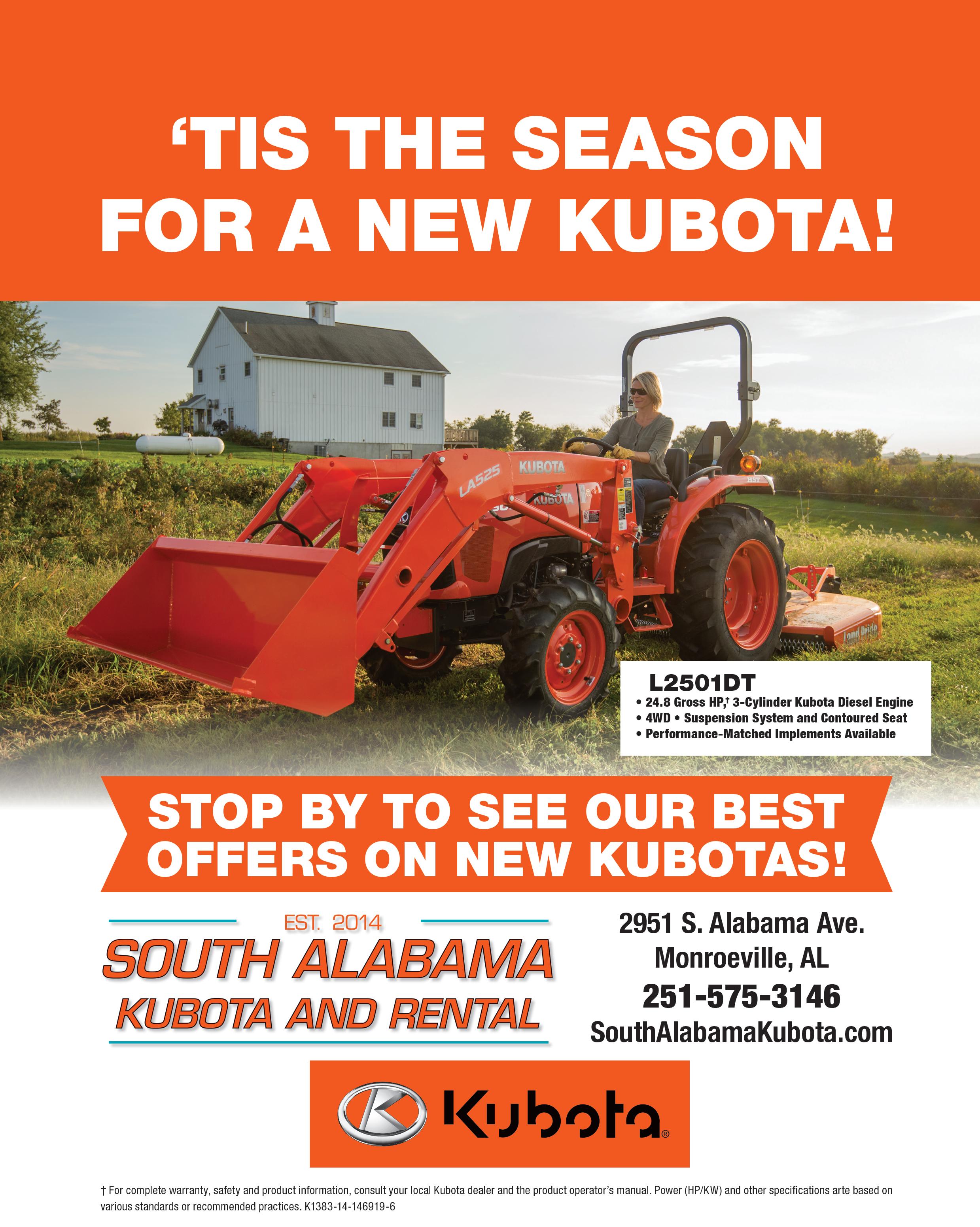 Closing Deadlines (in our office): February 2023 Issue by December 23 March 2022 Issue by January 25 April 2023 Issue by February 23 Ads are $1.75 per word with a 10 word minimum and are on a prepaid basis; Telephone numbers, email addresses and websites are considered 1 word each. Ads will not be taken over the phone. You may email your ad to hdutton@areapower.com; or call (800)410-2737 ask for Heather for pricing.; We accept checks, money orders and all major credit cards. Mail ad submission along with a check or money order made payable to ALABAMA LIVING, P.O. Box 244014, Montgomery, AL 36124 – Attn: Classifieds.