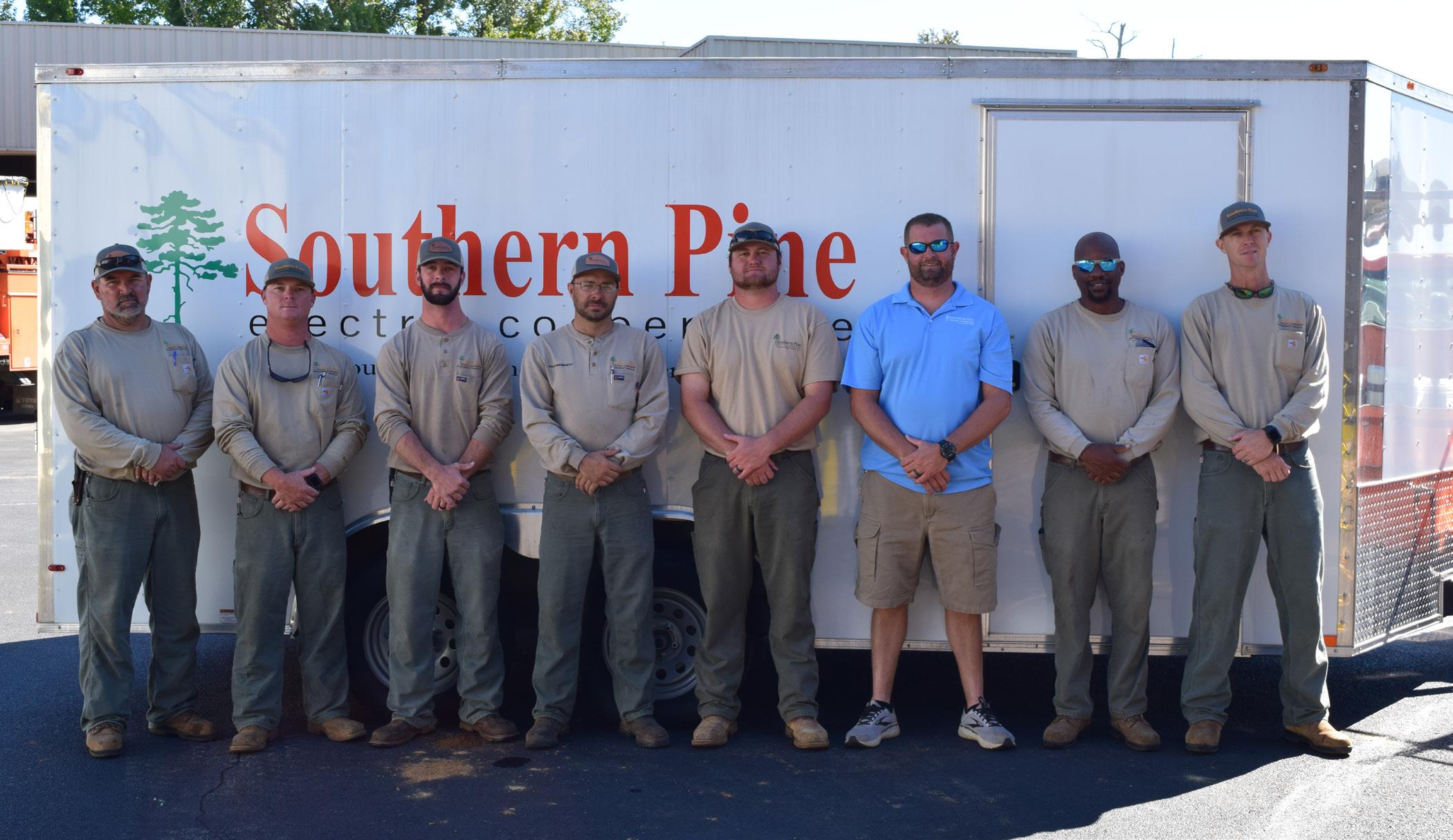 Southern Pine Electric Co-op sent sev eral employees to Lee County Electric Cooperative in Ft. Myers, Florida on Oc tober 3, 2022 to help restore power after Hurricane Ian’s landfall.