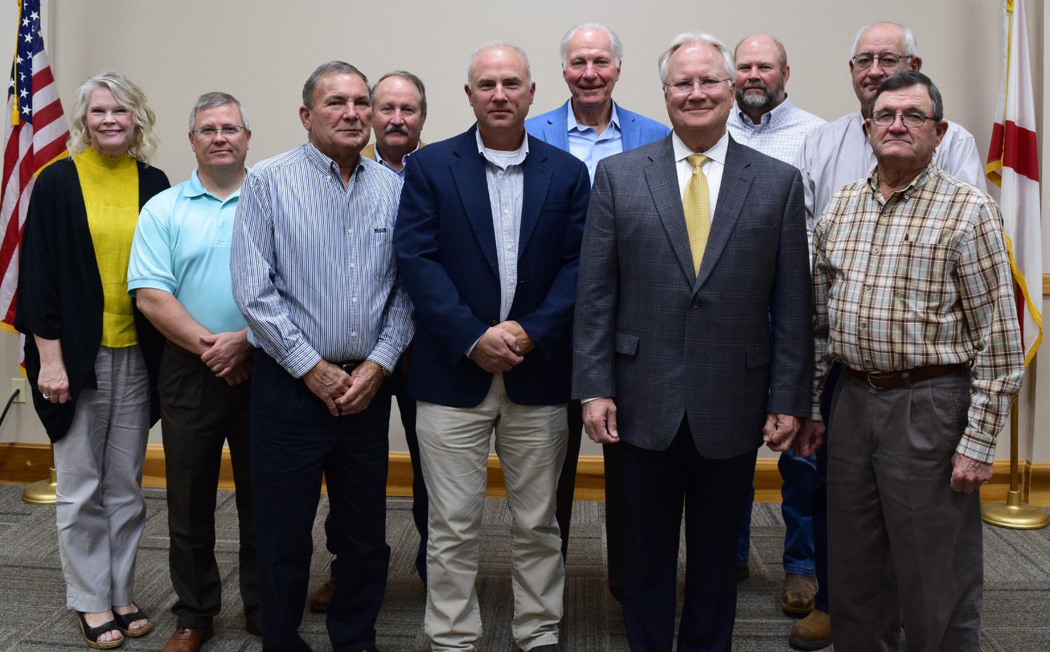 Board of trustees members present are (L to R): Lynn Powell, Scotty White, Bobby Ballard, Dwight Maloy, General Manager Vince Johnson, Keith Pugh, Congressman Jerry Carl, Rod Higdon, David Cook, Jr. and Hilbert Hall.