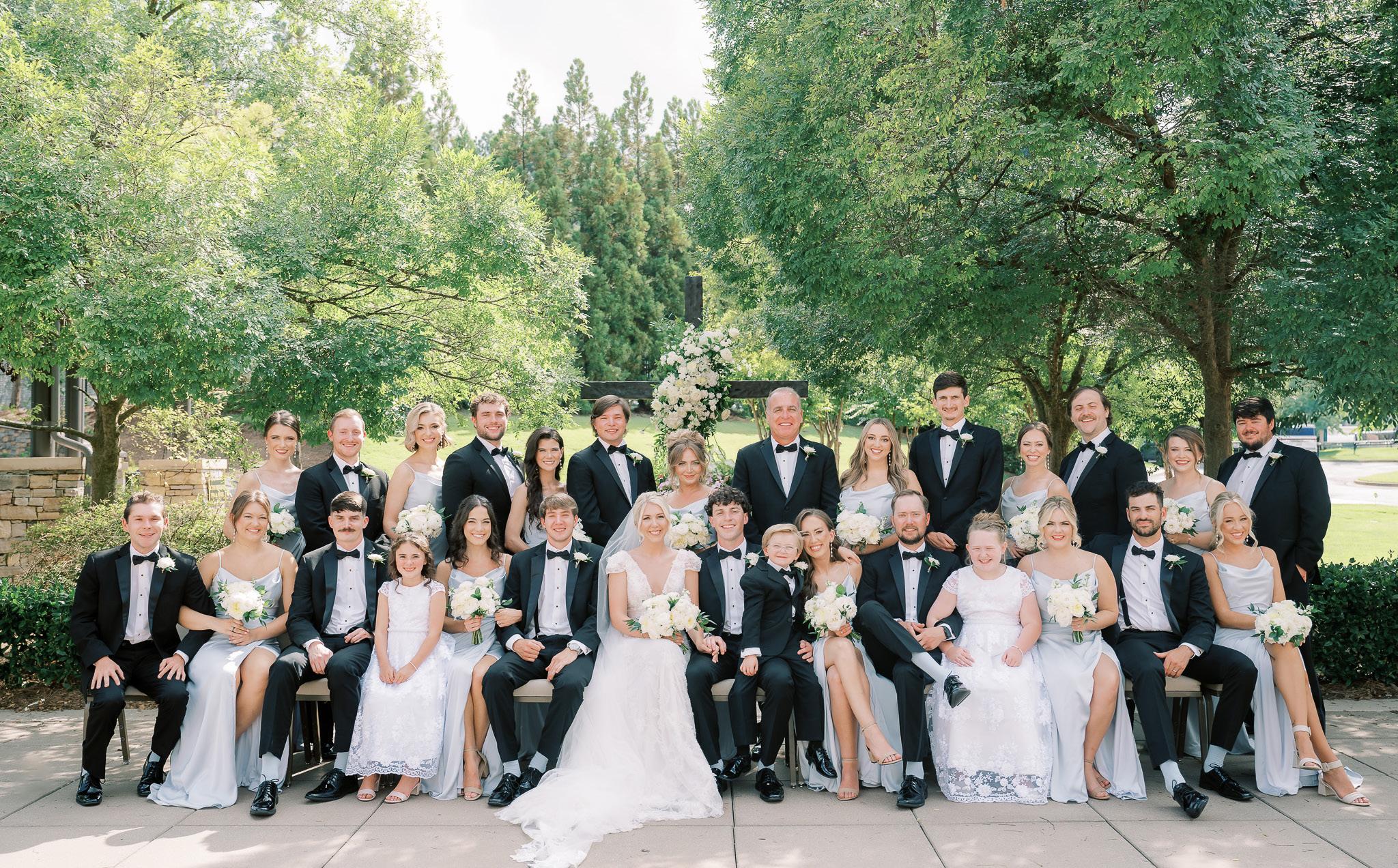 Bridal Gown: The White Room. Bridesmaid Gowns: Birdy Grey. Cake: Leslie Swearengin. Catering: Regina Henderson. Ceremony, Reception, and Rehearsal Dinner Venue: Infinity Event Venue. Floral Design: Lake Guntersville Florist. Groom’s & Groomsmen’s Attire: Brantleys. Hair Stylist: Chelsea Dudley. Makeup Artist: KC Beauty. Yazmin Cavale of GLOW. Music/Entertainment: Metropolitan Disc Jockey. Photography: Tina Higgins. Rentals: Alpha Lit Huntsville, Something Borrowed. Rings: Kay. Videography: Samples Photo & Video. Wedding Planner: Social Graces Events.