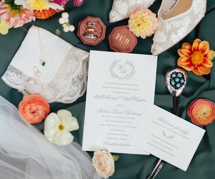 Alabama Weddings is an annual publication with six bi-monthly covers. The contents remain the same from the Jan/Feb issue to the Nov/Dec issue. All Rights Reserved. No portion of this publication may be reproduced or reprinted in any form without express permission of the publisher. All claims, materials, and photos furnished or used are, to the publisher’s knowledge, true and correct. Hence, liability cannot be assumed by the publisher for errors or omissions. Alabama Weddings, Alabama Weddings, LLC or its publishers assume no responsibility for unsolicited photographs and/or manuscripts or any print relating to those photographs and/or manuscripts including credit information. Advertisements and editorial information in this publication produced by Alabama Weddings, LLC are subject to the unrestricted right to edit by our editors/publisher.