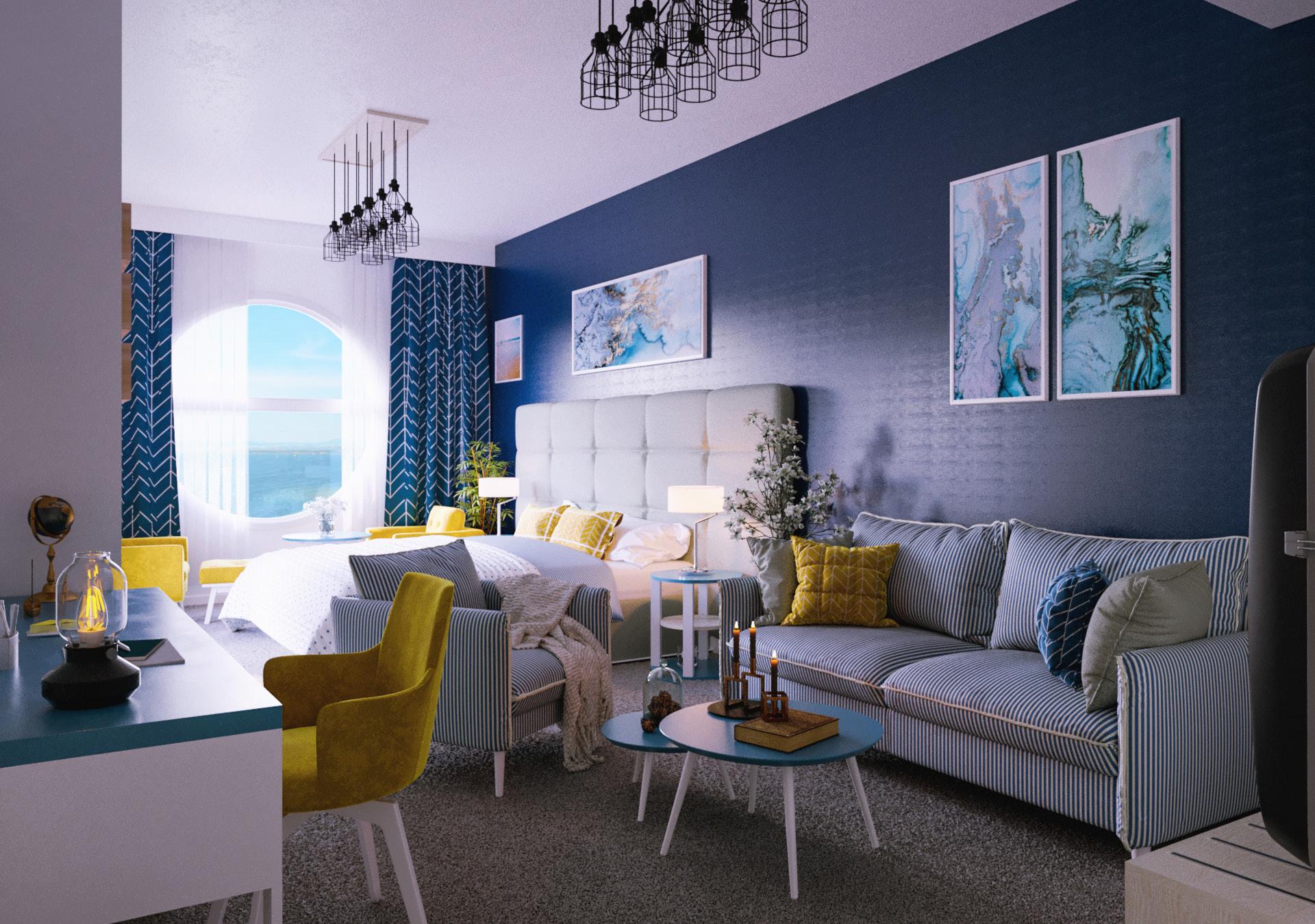 TERGA hotel de trois étoiles, se situe près de la plage Terga, Ain Temouchent, Algérie, il a la forme d’un bateau, c’est de de la que je me suis inspiré de du bleu de la mer et jaune du sable, j’ai pris une chambre standard de 23 m 2 et une suite de 36.41 m 2 Sachant que la S.D.B est similaire entre les deux.