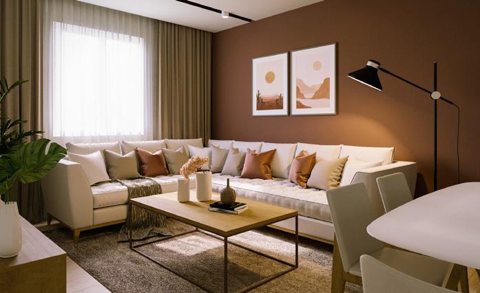 Un appartement F3 de 73 m 2 se situe à Gdyel, Oran, coposée d’une cuisine; un séjour; un séjour pour la famille; S.D.B; W.C; et une chambre parentale, doté d’une palette de coleur chaude et confortable en préférence du bois beige pour le sol et des nuance de rouge bri que et les murs; accessoires de décor bois, pour donner un peu de présence et d’énergie, sans oublié quelque touche de couleur froide pour la cuisine, et W.C.