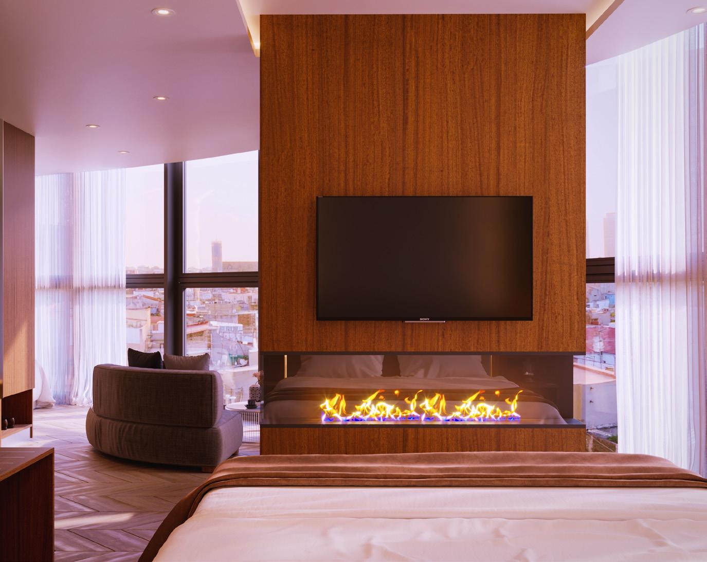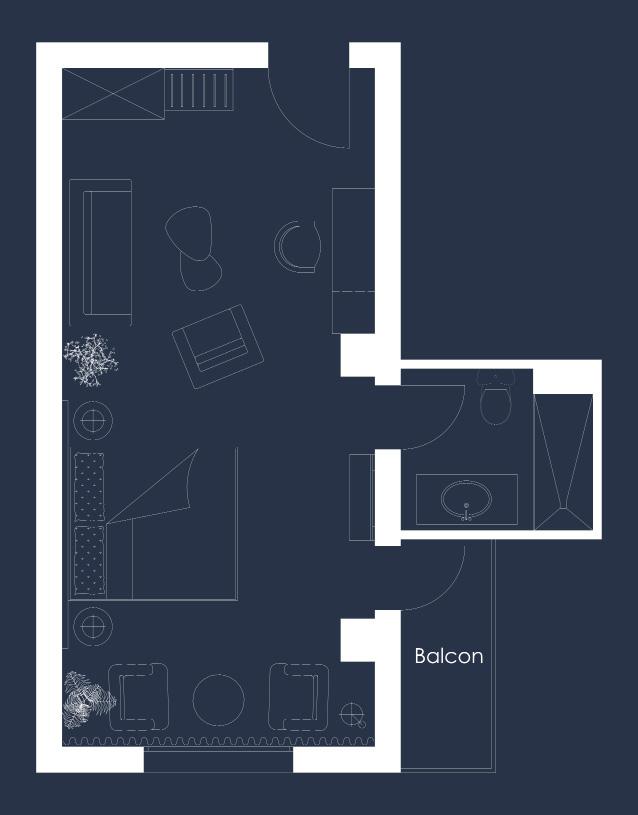 La suite est de superficie de 41m 2 qui profite d’un mur redeau donant une vue panoramique de la ville de Béjaia a une ambiance du bois et de céramique de texture de pièrre marron avec des accessoire de décor géométriseé en mosaique de kabylie, une ambiance chaude et confortable, calme et élégante.