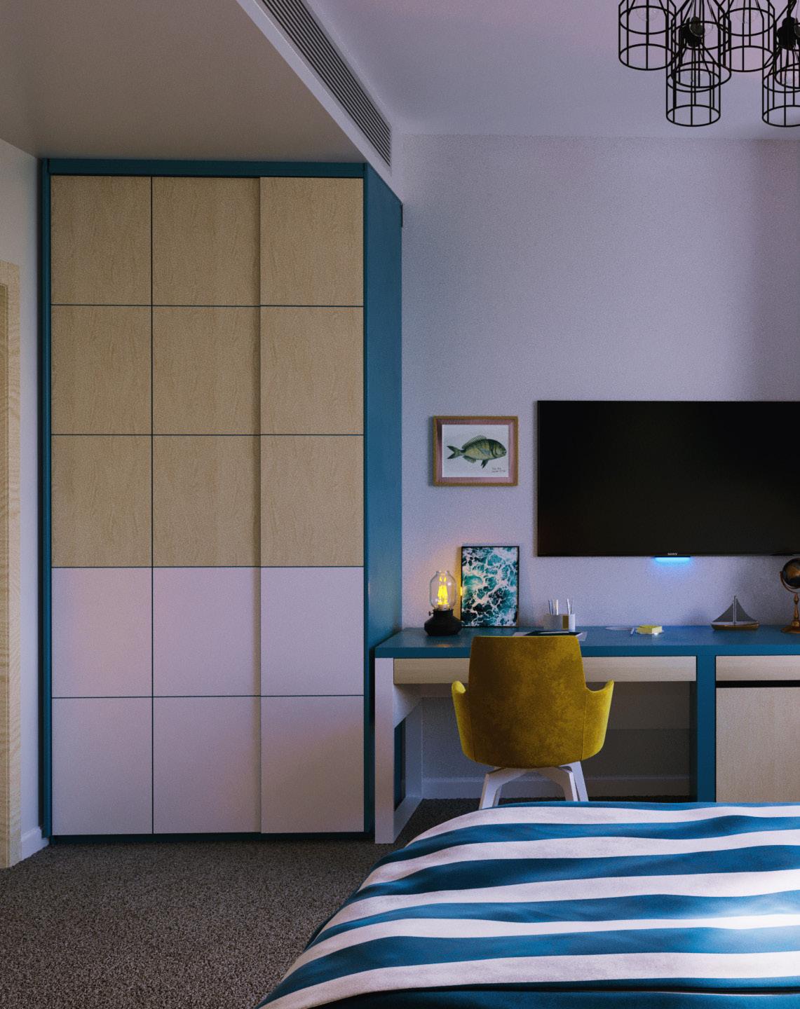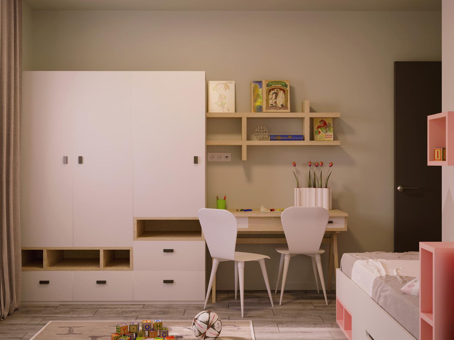 Une chambre d’enfant vive en couleur maxi miser pour plus de rangemant, enfin tous ce qu’il a be soin un enfant.