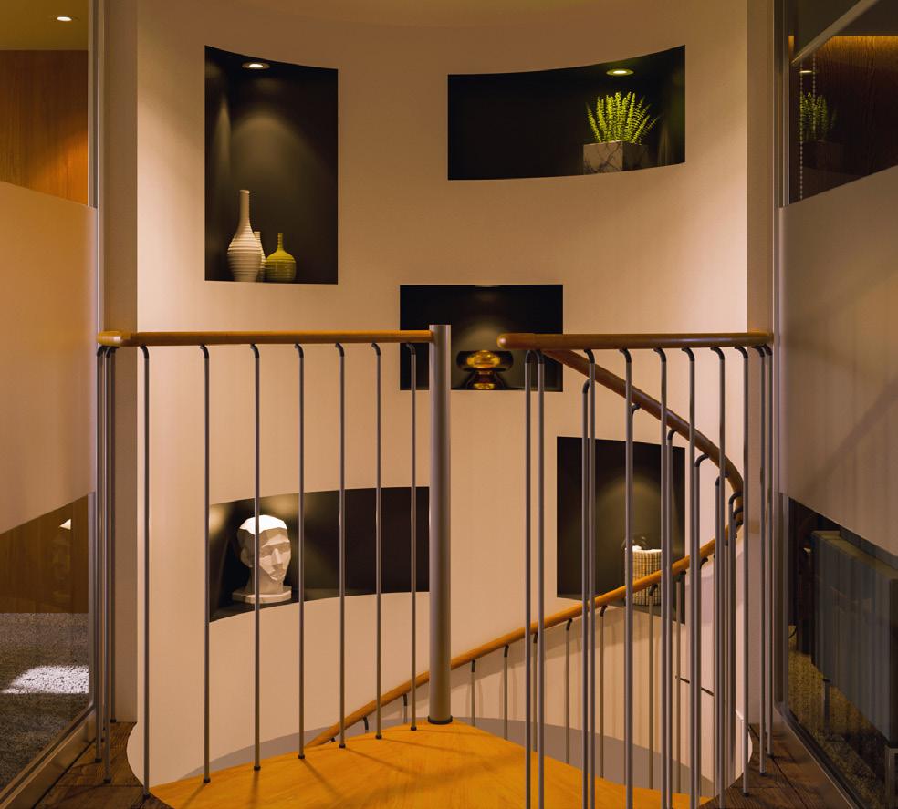 Le RDC a une ambi ance d’énergie et d’encouragement de détermination avec des de bois orange pour le mur d’accueil et le meuble et l’es caliet avec quelque touche du noir st bois wengué tous en adouçant l’espace avec quelque plante.