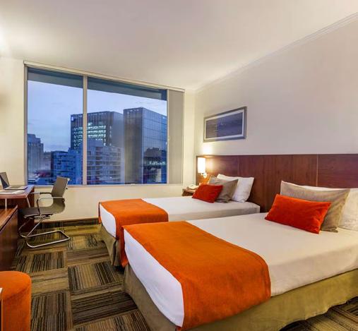 En Santiago un hotel moderno y cosmopolita, vanguardista en diseño e innovación tecnológica, de bajas emisiones de contaminantes, gastronomía Mediterránea y cómodas habitaciones. Esto sumado a una ubicación estratégica, inmejorable, a pasos del Metro Manquehue y a solo 10 minutos caminando hasta CENTRO PARQUE, sede del CONGRESO ALADYR CHILE 2026.