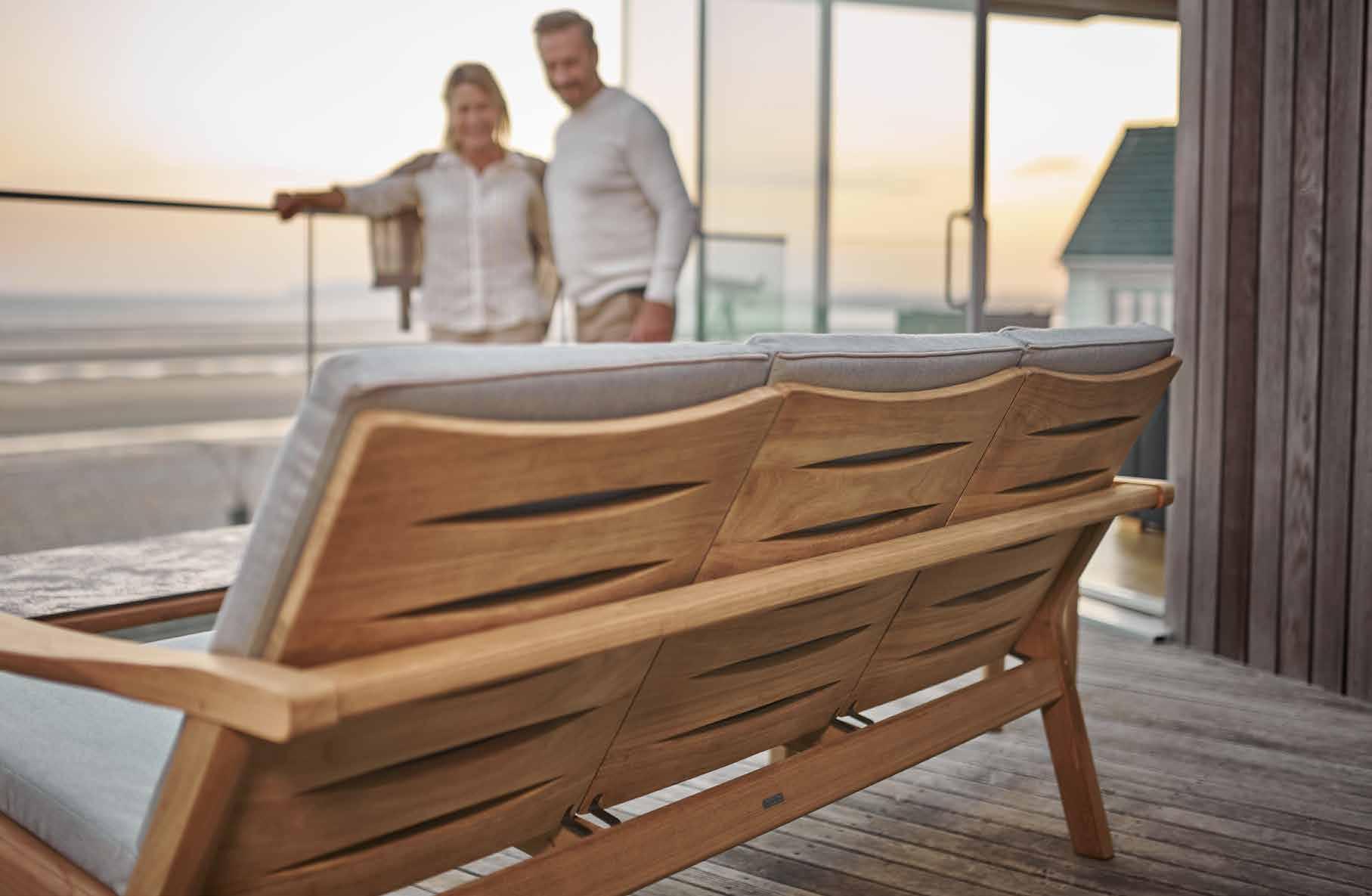 Teak ist ein sommergrünes Hartholz, das auf bewirtschafteten Plantagen angebaut wird; es stammt nicht aus tropischen Regenwäldern. Teakholz hat von Natur aus einen hohen Ölgehalt, der dem Holz eine hohe Festigkeit verleiht und es auch unter extremen Klimabedingungen verrottungsbeständig macht. Diese besonderen Eigenschaften haben Teak seit Jahrhunderten zum bevorzugten Material für Schiffsdecks und im Bauwesen gemacht und sind auch der Grund, warum es als besonders hochwertiges Holz für Outdoor-Möbel gilt.