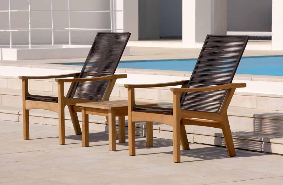 Wir kombinieren Edelstahl mit Bespannungen aus Textilene® oder Sunbrella® und bestes Teakholz mit aus Olefin® gewebten wetterbeständigen Seilbespannungen.