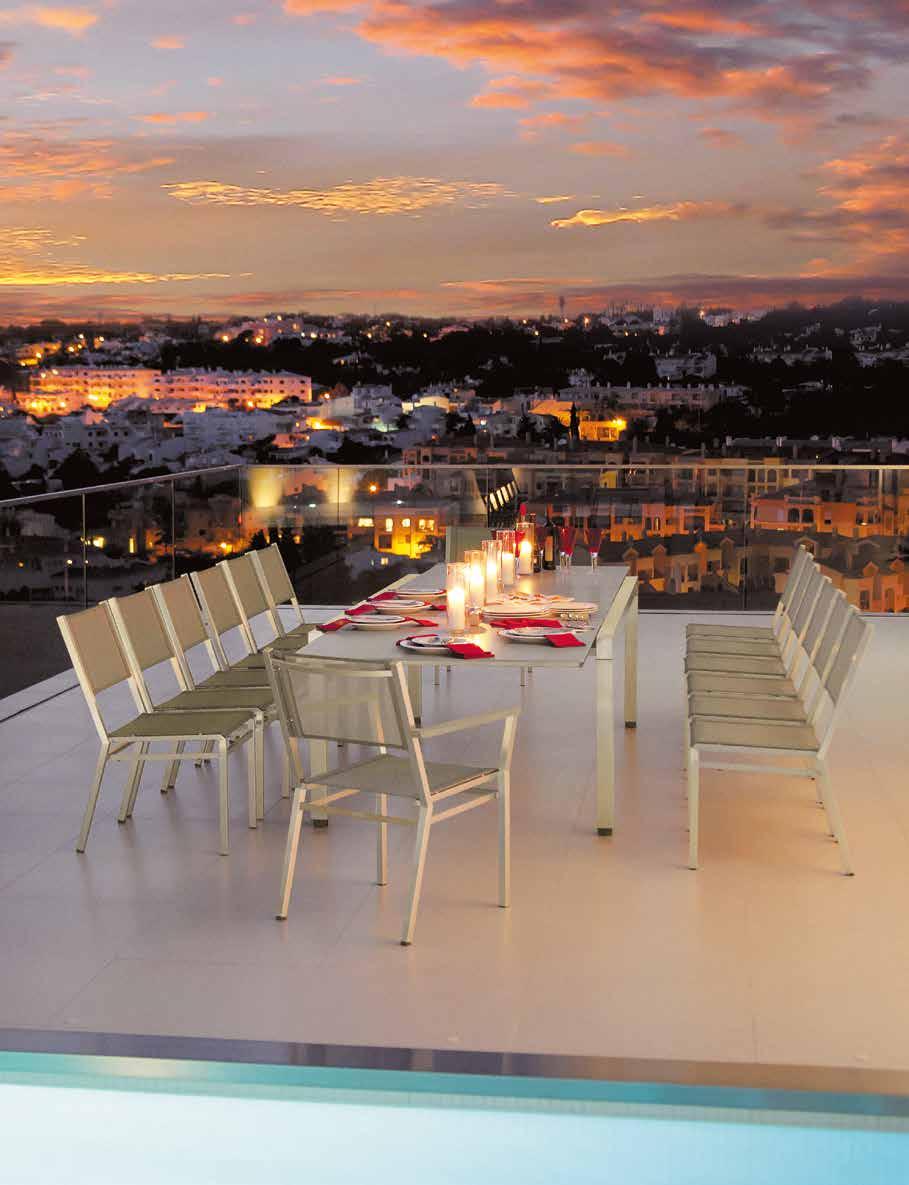 Wir stellen Aluminium- und Edelstahlgestelle mit Pulverbeschichtungen her und kombinieren sie mit Synthetikgeweben zu zeitgenössischen Möbeln, die unseren traditionell hohen Standards entsprechen.