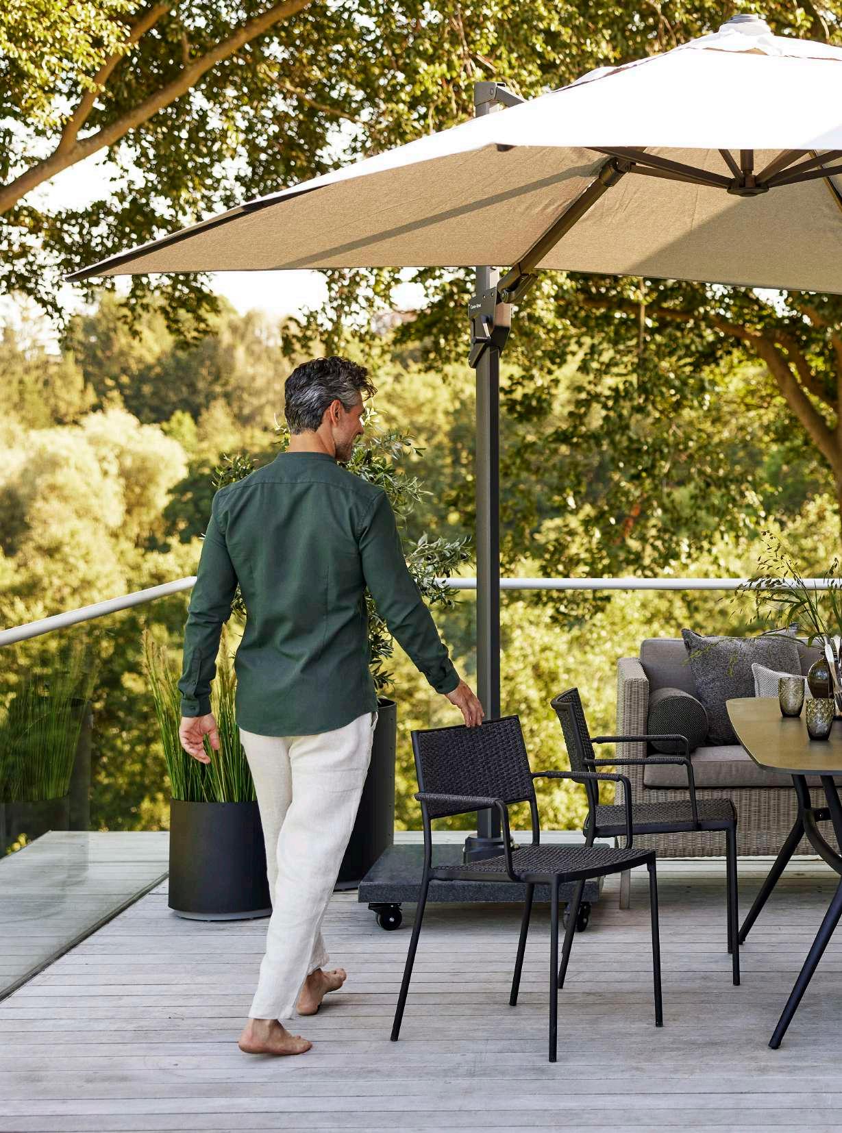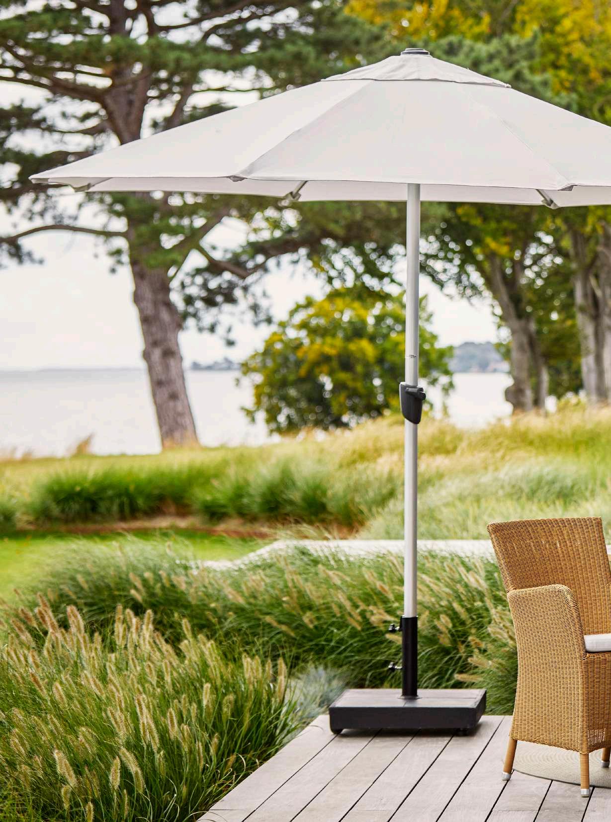 280g/m2 Cover: Cover no. 9 Parasol base 5715SC / Slate W D H Pole hole Wgt 54cm 54cm 40cm Ø54mm 47kg 21.3” 21.3 95.3 2.1” 103lbs Categori: Parasol base w/wheels Material: Slate Grow 5779ALI / Lava grey/Light grey W D H Pole hole Pole hole1 Wgt 50cm 50cm 48cm Ø54mm Ø48mm 9,72kg 19.7” 19.7 18.9 2.1” 1.9” 21.5lbs Categori: Parasol base w/wheels Material: Aluminium 59300TY506 / Light grey Ø H Pole 300cm 249cm Ø48mm 118.1 98” 1.9” Categori: Parasol, rope and pulley system Pole: Teak Fabric: 100% solution dyed polyester 280g/m2 Cover: Cover no. 7 Classic