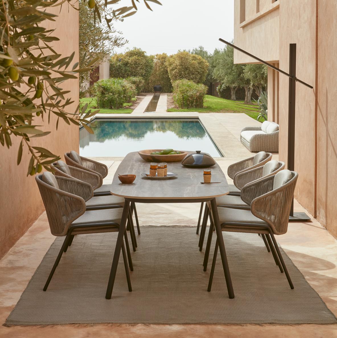 Timeless in style, Kobo chairs and sofas constitute a marvel of technical complexity. Kobo’s secret? A structure made entirely of hand-woven rope around a welded aluminium frame. The curved lines of the armchair and full-length sofa are combined with deep, plush seating for extreme comfort.