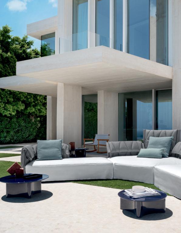 Le garnissage des assises et des dossiers est réalisé en polyuréthane expansé afin de les rendre plus compacts et résistants. Il est parfaitement imperméabilisé grâce à des housses en polyester aux propriétés hydrofuges et hydrophobes et grâce aux coutures thermosoudées. Tous les coussins et les parties rembourrées de la collection sont déhoussables.