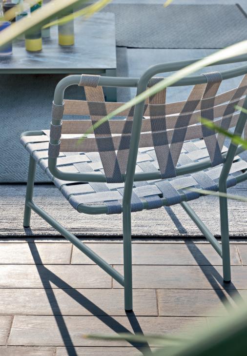 The padding of the seat and back cushions is made of polyurethane foam to improve their compactness and resilience. The perfect water-repellence is guaranteed by the polyester cushion covers, treated with specific waterproof and water-repellent products, and the heat welded seams. All the cushions and upholstered elements of the collection have removable covers.