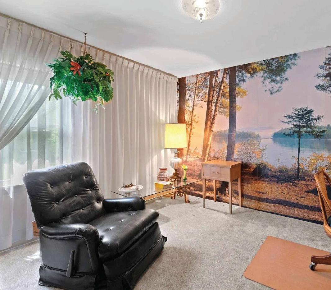The guest bedroom remained the most untouched throughout the remodel. The mural on the head wall retains the history from the original owners of the house. This character keeps the history while adding a captivating visual to brighten the entire living quarters.