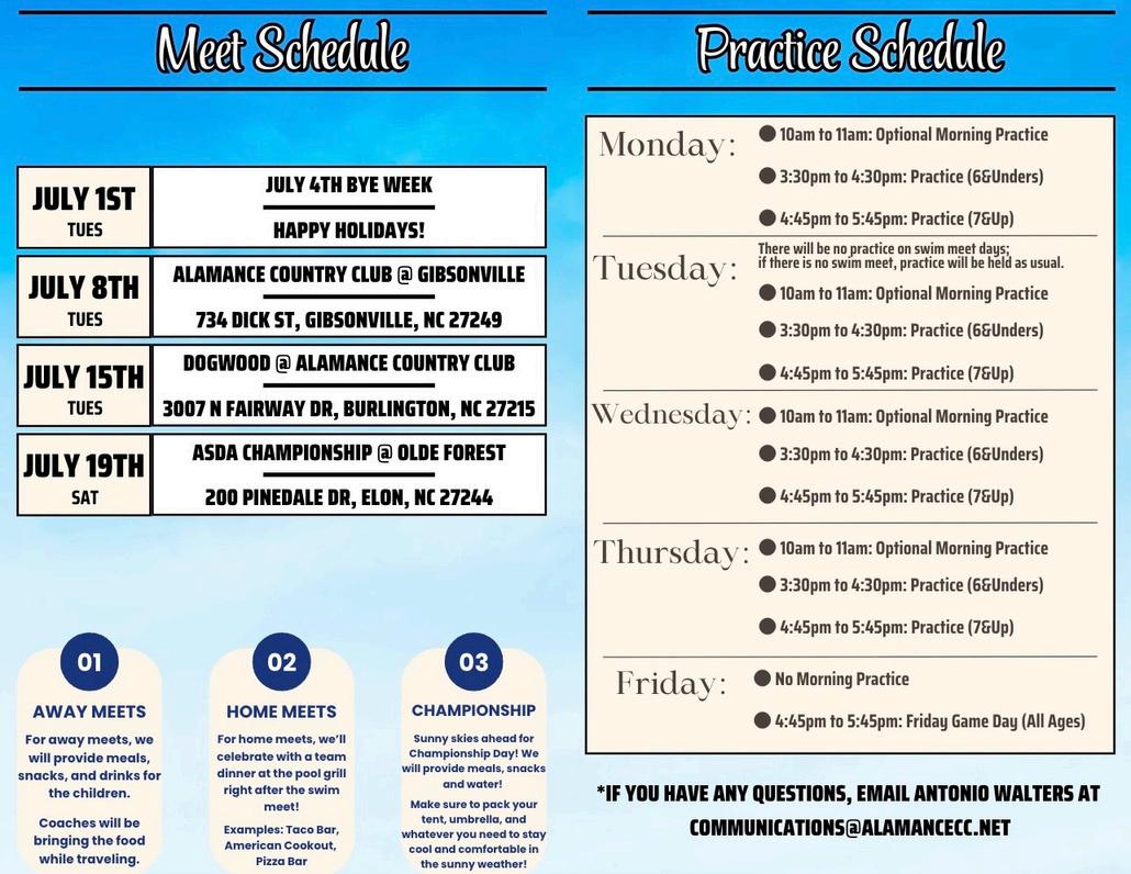 Please note that the pool will close at 4:00 PM on July 15th for our home swim meet.