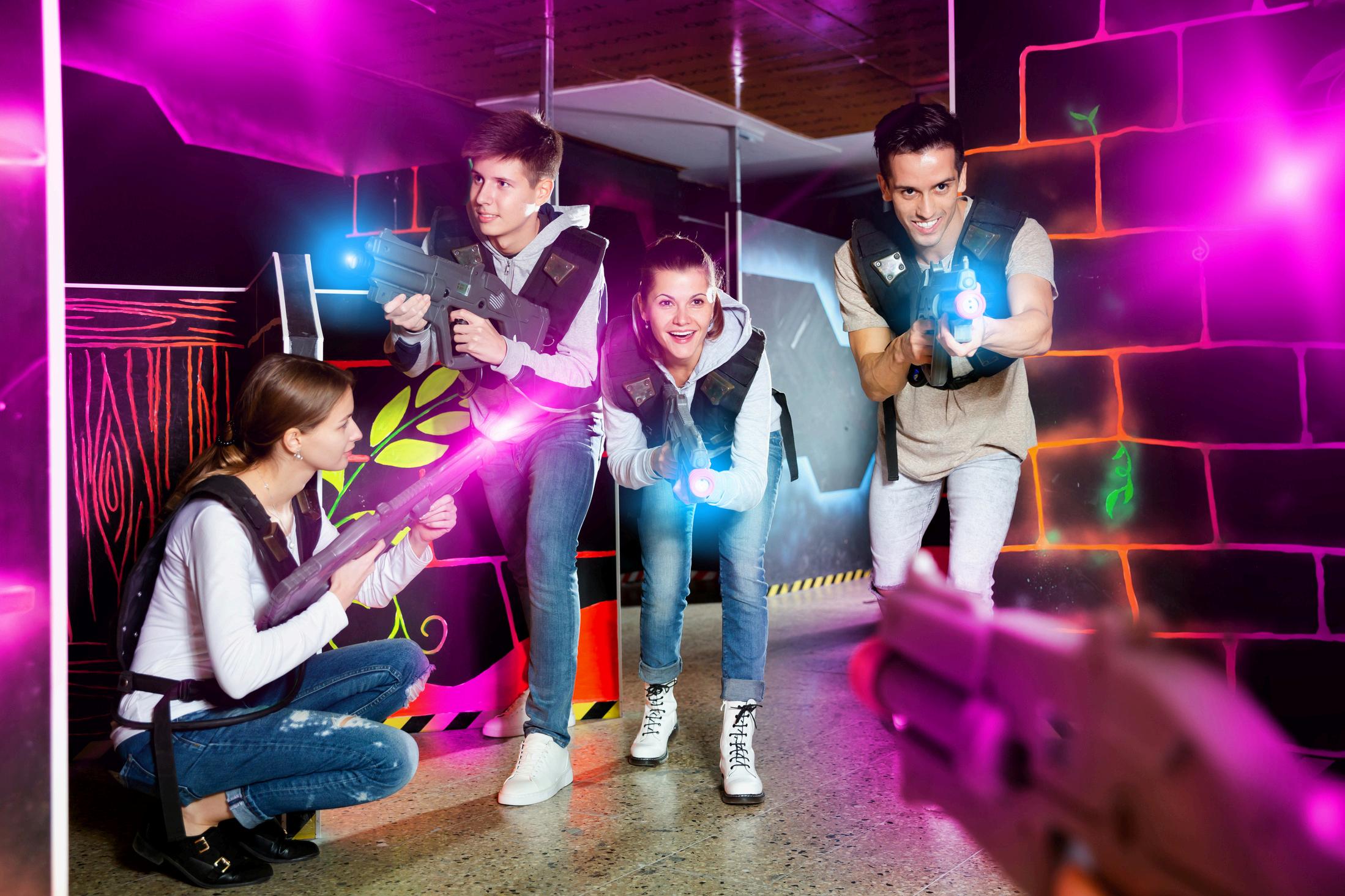 GEAR UP FOR A NIGHT OF LASER TAG WITH OUR RAZORBACK® LASER TAGGERS! OUR GAME COACH WILL BE THERE TO GUIDE YOU THROUGH THE ACTION-PACKED GAMES. TAKE COVER AND PLAN YOUR MOVES WITH OUR CAMO POPUP BUNKERS, PERFECT FOR HIDING AND STRATEGIZING.