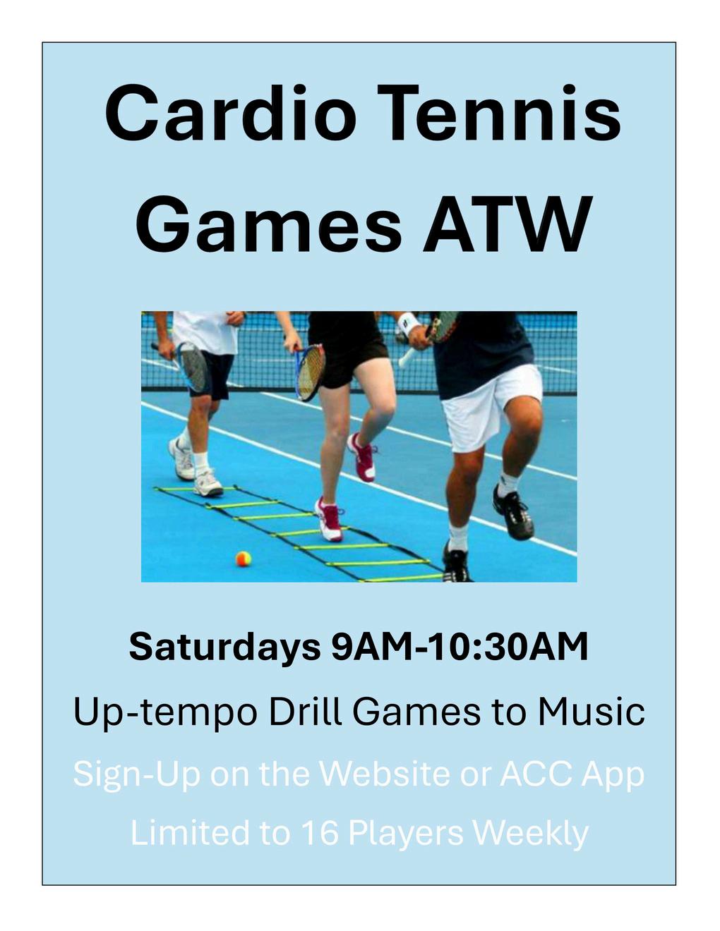 9:00a - 10:30a - ATW (Adult Tennis Workout) Cardio Games