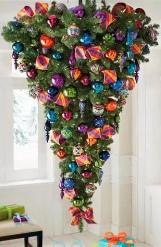 In recent years, these topsyturvy trees have made a comeback, particularly in department stores and malls. Besides just being a striking design choice, it's actually pretty beneficial. Since it's attached to the ceiling, this way of hanging clears up more floor space for merchandise.Also, more ornaments are displayed on eyelevel.