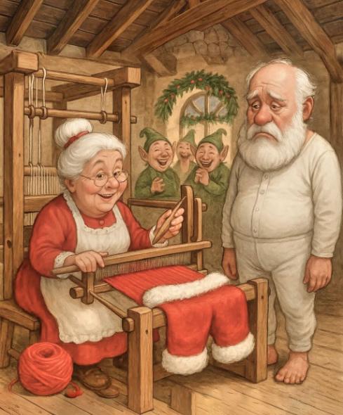 In the workshop of yuletide cheer, I tackled gift wrapping with festive fear.