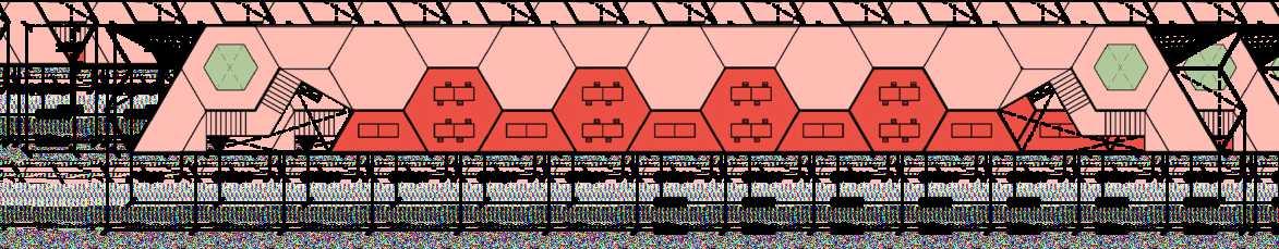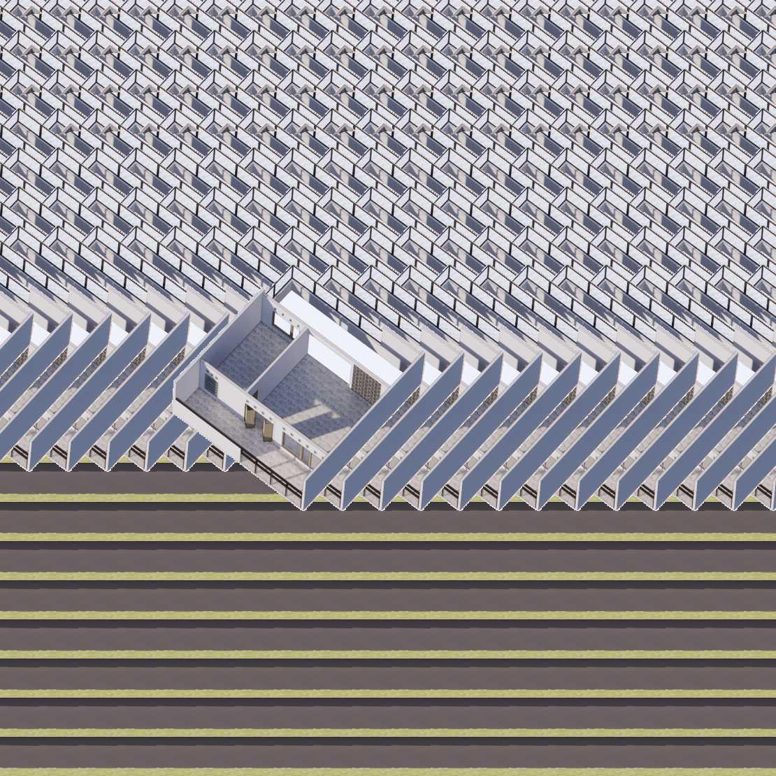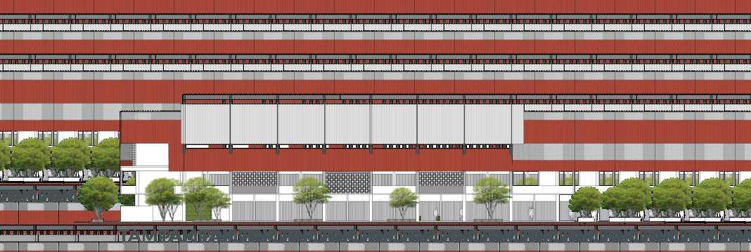 Merubah bentuk bangunan tengah dengan bentuk lingkaran yang memiliki sifat memusat sebagai usaha untuk meningkatkan interaksi. Massa dibuat memiliki celah agar dapat merespon site seperti udara tetap mengalir di tengah gedung, kemudian cahaya dari timur barat bisa dikontrol dengan bukaan yang ditaruh pada celah tersebut.