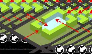 Memberikan perlubangan di tengah massa lingkaran untuk pusat ruang dan pusat a k t i v i t a s y a n g d a p a t mengakses sekelilingnya