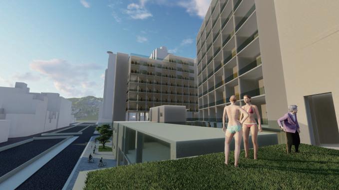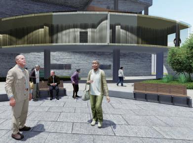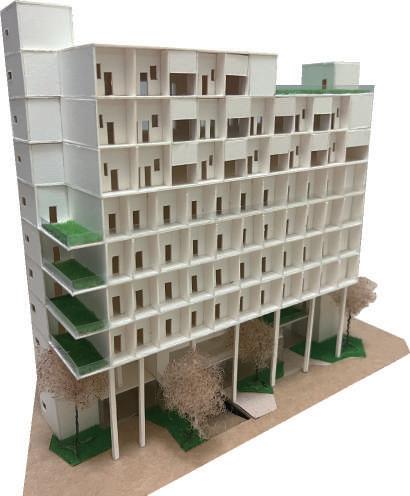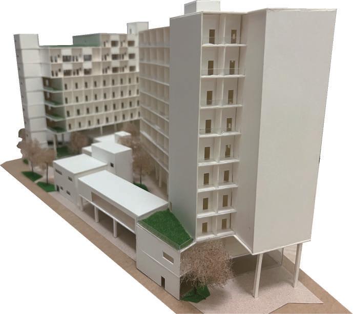 的街廓與騎樓,不僅造成居民困擾,也導致市 景容貌不佳。因此我的社會住宅結合遊民