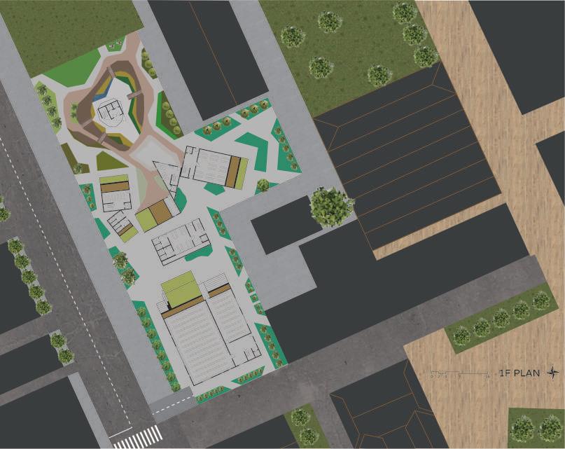 平面圖 渲染圖 DN 6m 坡度=1/6 6m 坡度=1/6 DN UP UP 1.4m 4.5m 坡度=1/6 UP UP UP DN DN 托嬰中心 員工休息室 電子閱讀 傳統閱讀 書架 會議空間 辦公空間 展覽空間 演講廳 工作坊 工作坊 工作坊 B2 PLAN N S 0 2 4 8 16 B1 PLAN N S 0 2 4 8 16 2F PLAN N S 0 2 4 8 16 3F PLAN N S 0 2 4 8 16