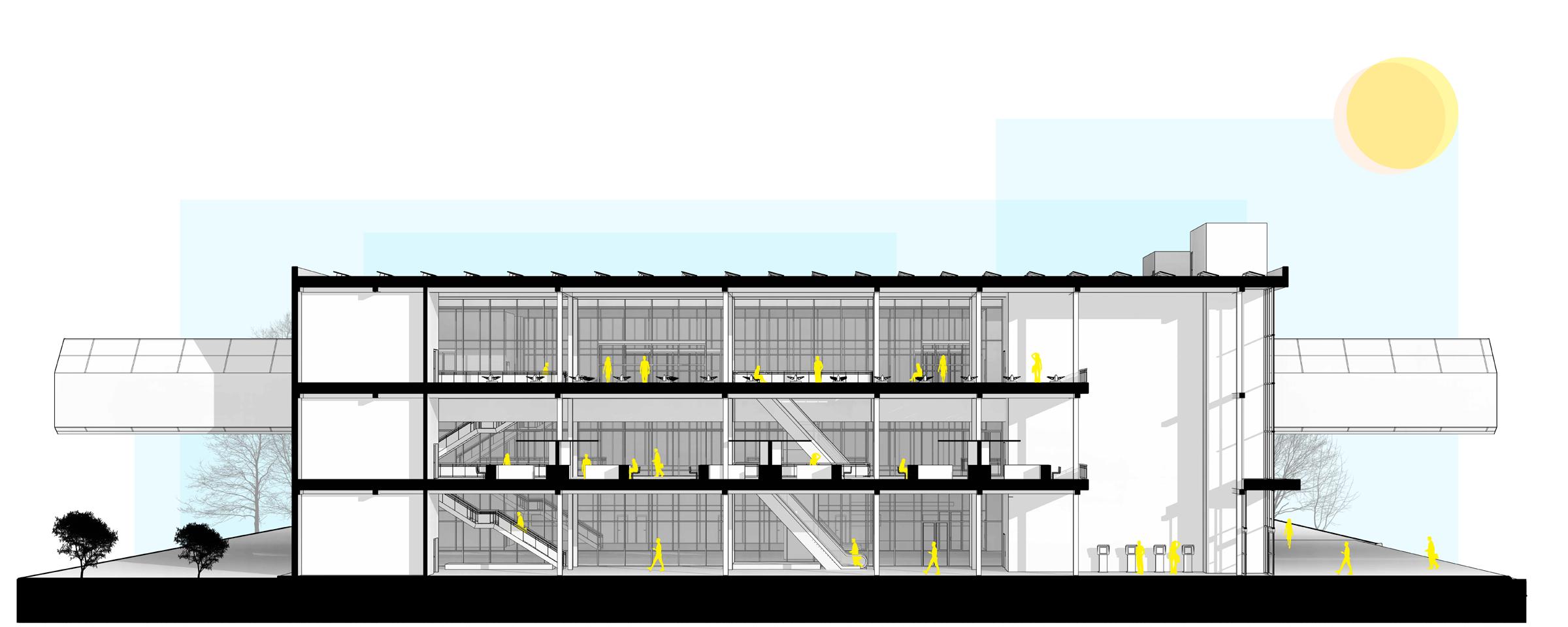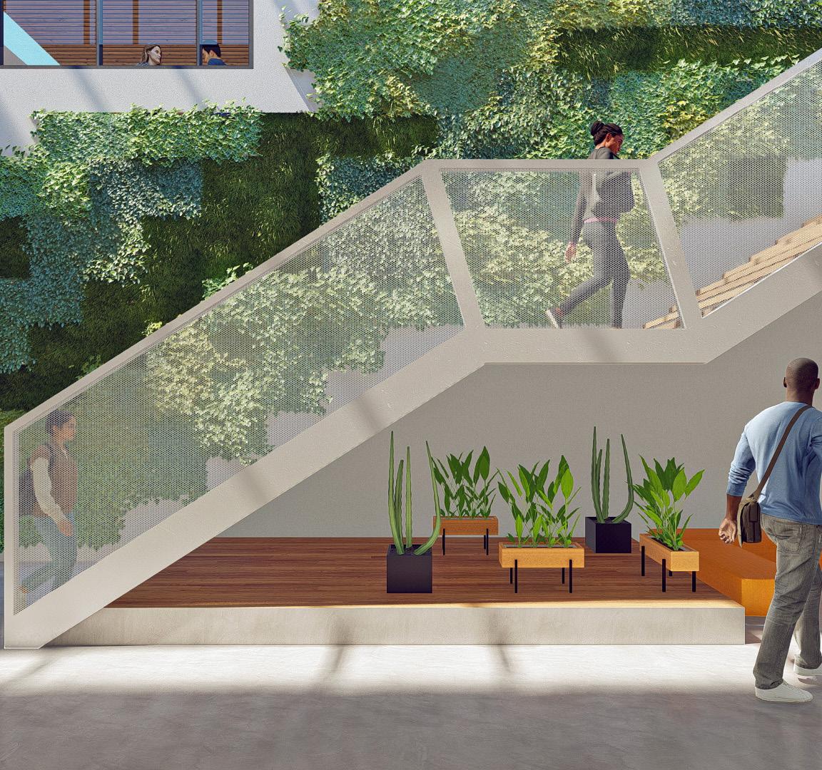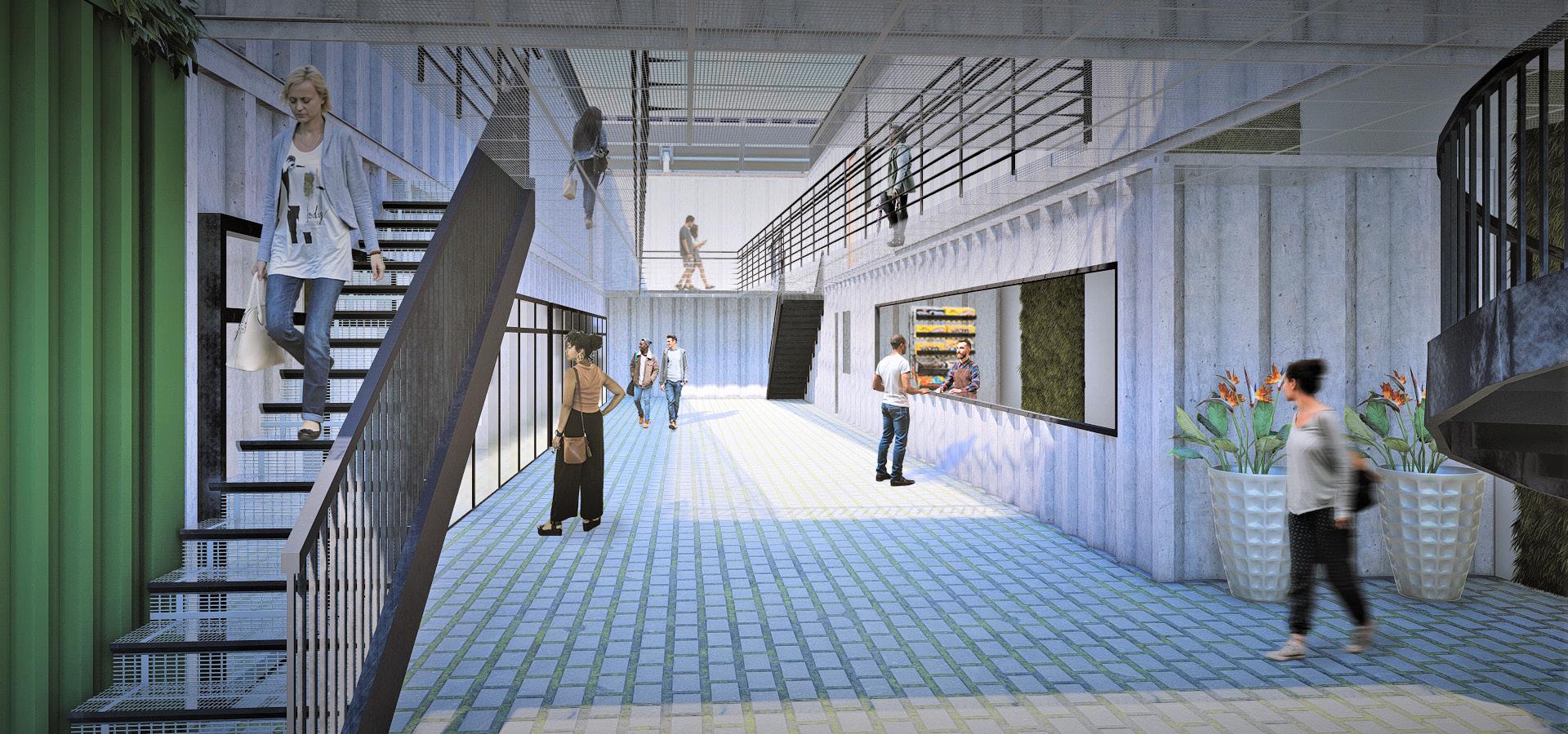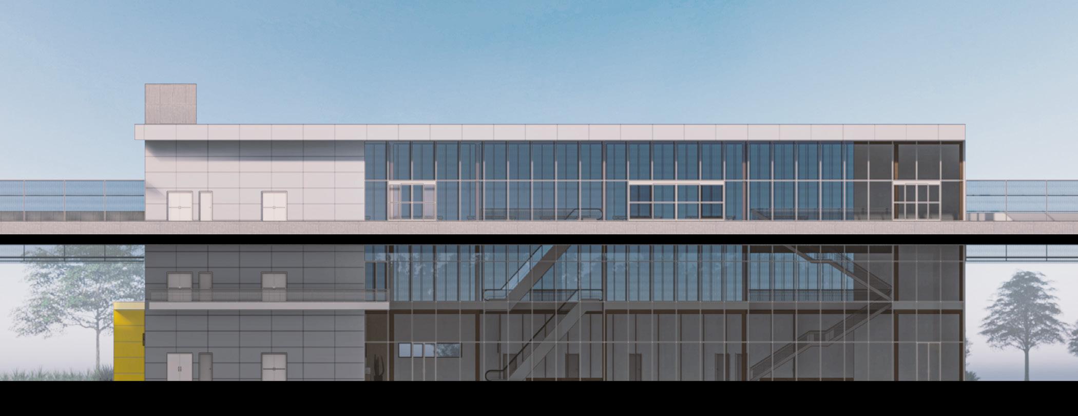 THE PROJECT WAS DESIGNED WITH SUSTAINABLE STRATEGIES TO DIMINISH THE ENVIRONMENTAL IMPACT AND MAXIMIZE THE USER COMFORT AND EXPERIENCE. THE TRANSPORTATION TERMINALS ARE TWO SYMMETRICAL BUILDINGS (TERMINALS) OF ABOUT 75,500 SQUARE FEET COMBINED, WHICH ALLOWS THE USERS TO ACCESS THE ELEVATED PLATFORM (35FT) AND HOP ON A TRAIN. THE TERMINALS CONSIST OF THREE LEVELS WITH DEDICATED SPACES FOR ADMINISTRATION, FOOD & RETAIL, AND LOUNGE WAITING AREAS.