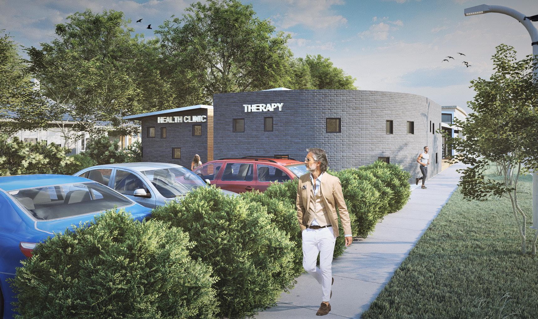 MENTAL AND PHYSICAL HEALTH IS OF PARAMOUNT IMPORTANCE TO A COMMUNITY WITH RESIDENTS OF A DIVERSE AGE RANGE. SOME RESIDENTS MAY NOT HAVE THE MOBILITY NECESSARY TO REACH HEALTH CARE FACILITIES. THE PROJECT PROPOSES A HEALTH AND WELLNESS CENTER PROVIDING CLINIC STYLE TREATMENT. A THERAPY OFFICE TO PROVIDE COUNSELING SERVICES TO THE RESIDENTS. ONE AIM OF MANY HOSPITALS