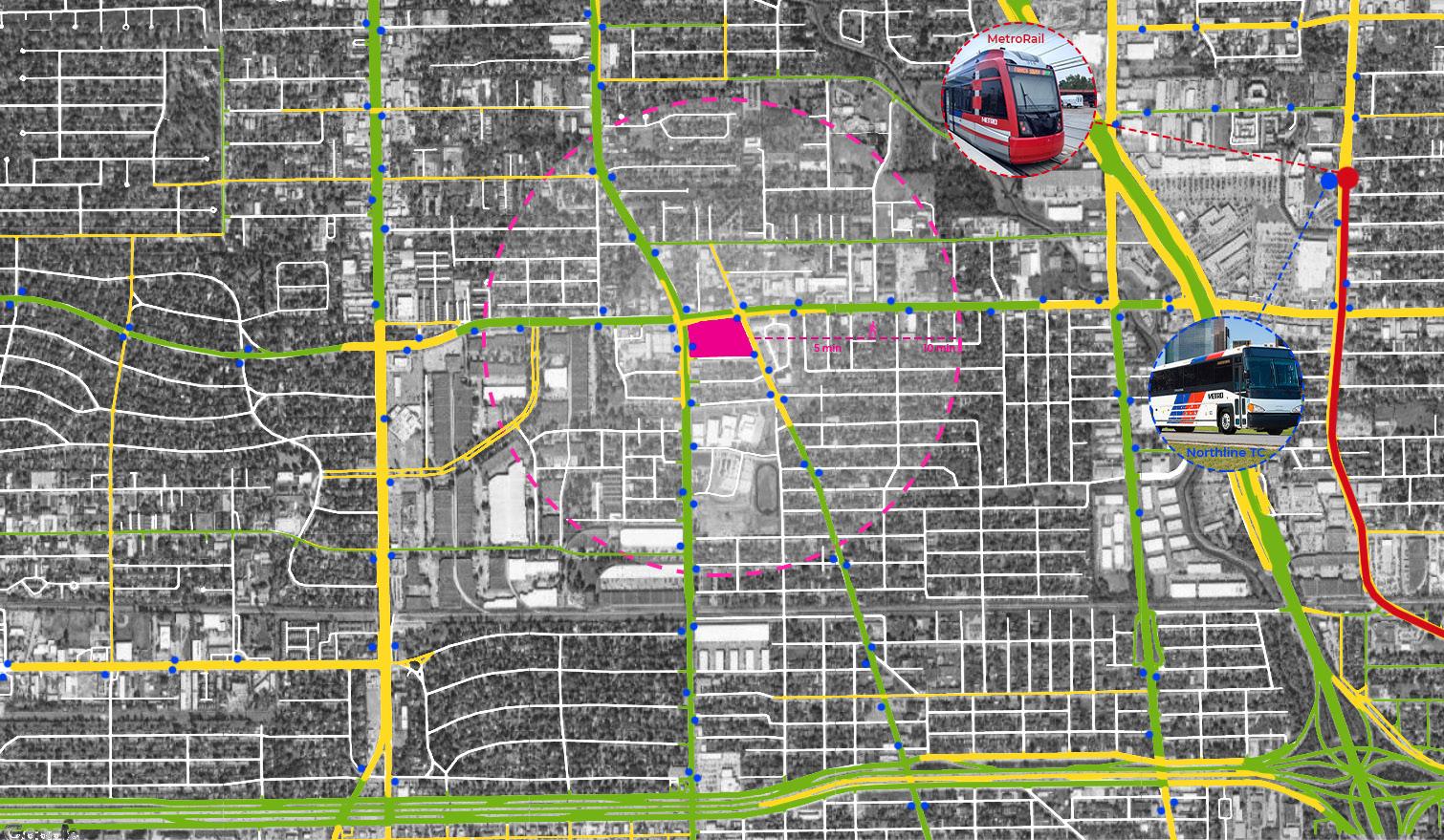 CONTEXT : LOCATION AND SITE TEXAS, USA AREA MAP HOUSTON, TX T E X A S MEXICO LOCATION MAP MetroRail Red LineProposed Site Northline TC & Stops Slow Traffic Fast Traffic