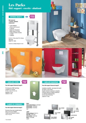 UNIVERSEL IMAGE’O Bâti universel + cuvette + abattant, comprenant : • 1 bâti métallique à fixer au mur ou au sol • 1 réservoir équipé d’un mécanisme double chasse 3 / 6 litres • 1 plaque de finition chromée • 1 cuvette • 1 abattant H 101,8 - 117,8 x L 50 x P 17,2 - 28 cm (bâti seul). 24687713 199 € À associer aux habillages Magispace et Cover.