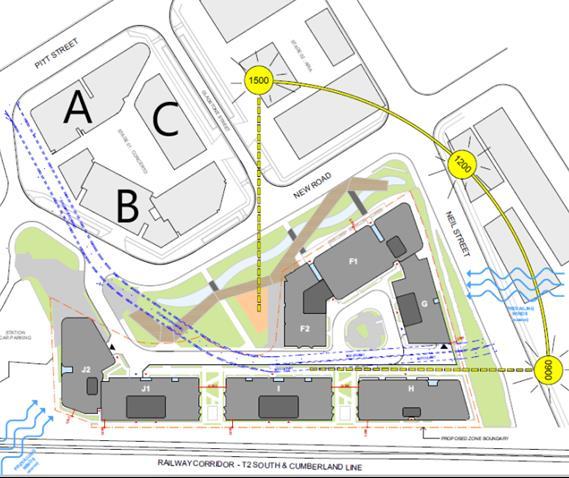 Site A&B is proposed to contain seven buildings including 799 residential units above between 550 – 2,000 sq.m of retail space. The proposed scheme would change the compliant height and FSR for Building J2 from 16 storeys to 25 storeys.