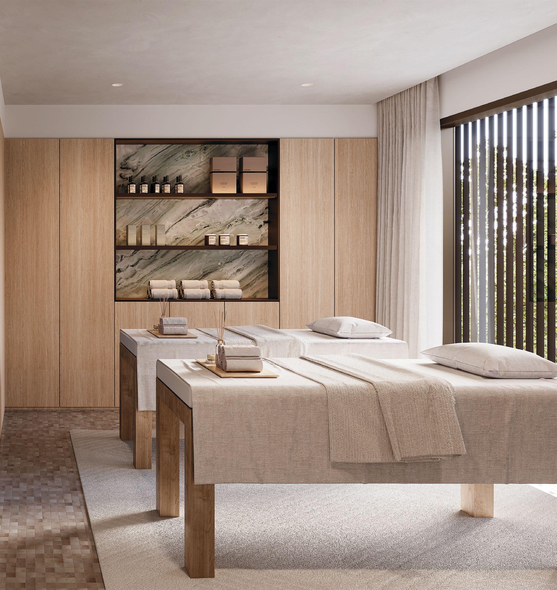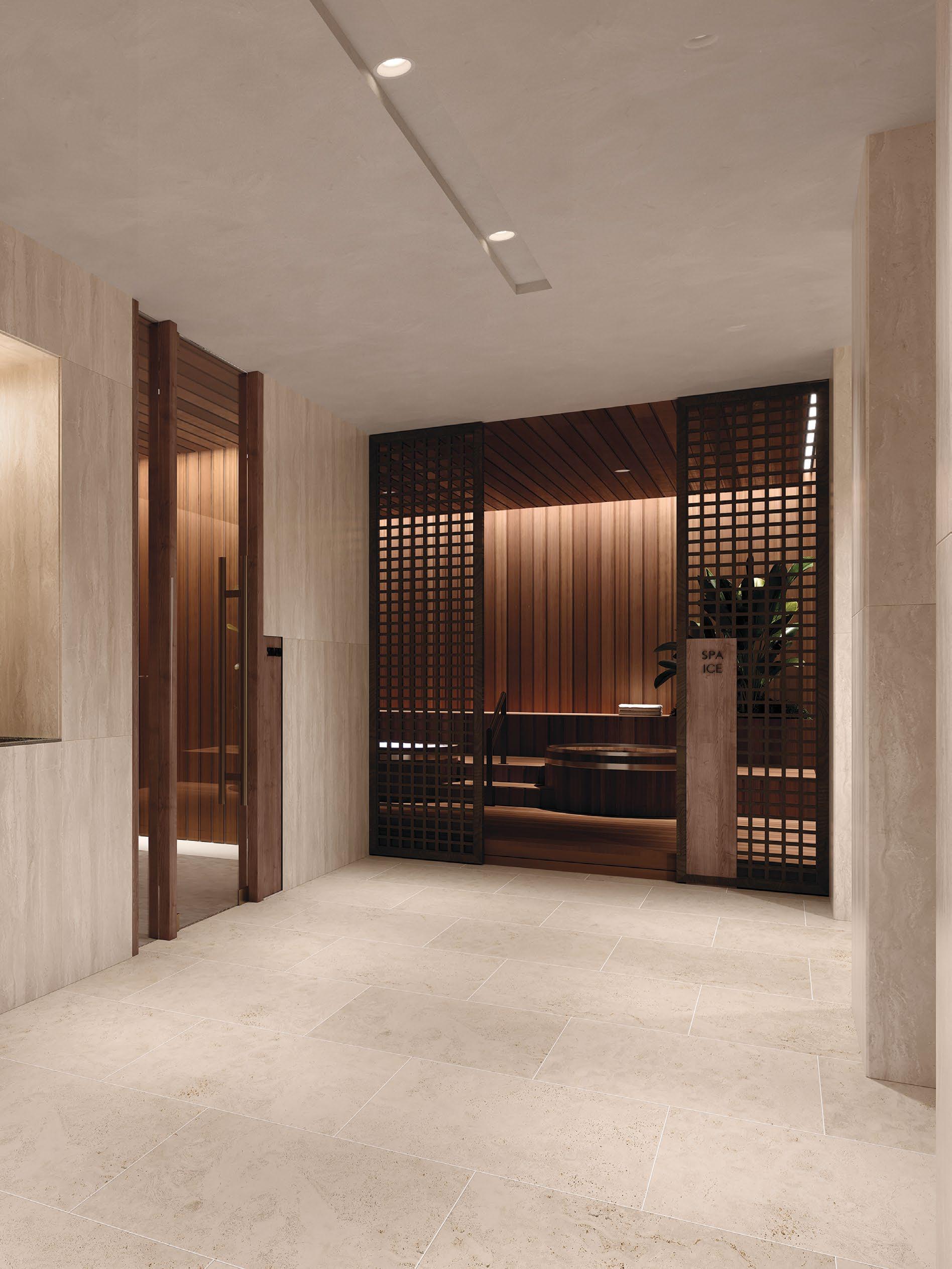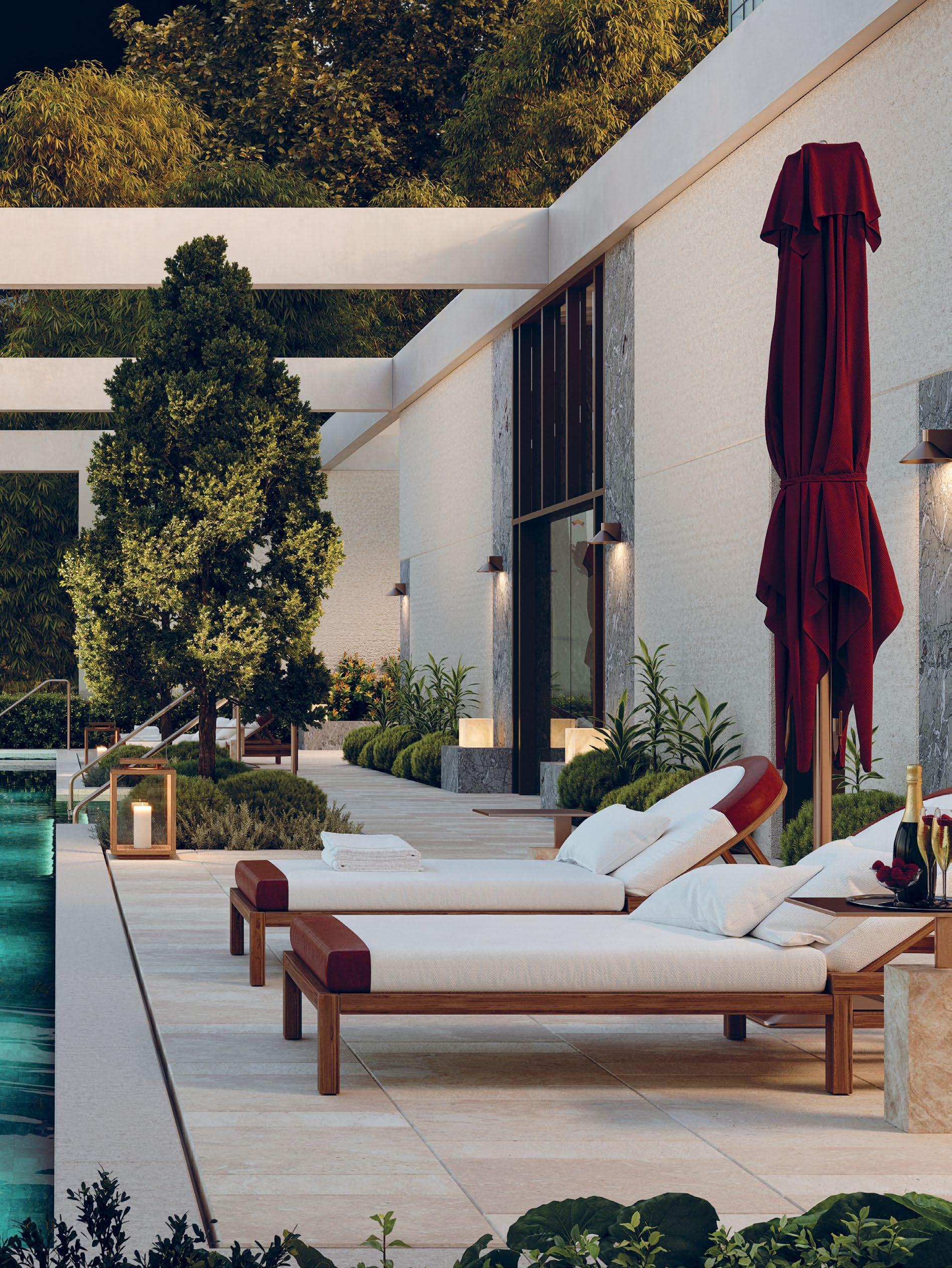 The Pavilion offers a serene escape featuring a tranquil pool with breathtaking views, a wellness studio, gymnasium, ice bath, steam room and sauna. Complementing these wellness amenities are a refined wine cellar and an inviting residents’ lounge, creating a space designed for relaxation and social connection.