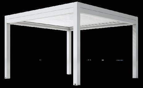 ES Pérgola bioclimática modular con cubierta de lamas retráctiles de aluminio extruido barnizado con polvo, disponible en la versión de isla, adosada y de pared. Se caracteriza por una estructura estilizada y con diseño minimalista formada por montantes de 13x13 cm de sección y un marco perimetral de 25 cm de alto. En un solo movimiento, las lamas giran, se compactan en poco espacio y dejan entrar la luz. La posición cerrada a 0° garantiza la impermeabilidad al agua y al aire gracias al sistema de sellado montado en la lama y por el perímetro de la estructura. La estructura permite instalar cierres laterales y cristaleras.
