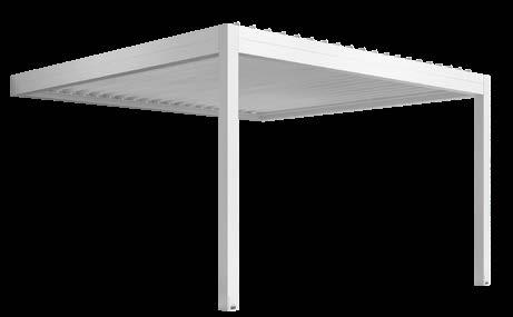 EN Modular bioclimatic pergola with adjustable and retractable blade cover in powder coated extruded aluminum, available in the free-standing or leaning version. The closed blades protect from the rain and sun and, if they are open, they create a pleasant natural ventilation in the covered area; when they are retracted, they will open your view of the sky and allow light to enter the room. Thanks to the minimal design, the structure integrates perfectly into any architectural context, enhancing it. The structure allows theinstallation of side closure or glass windows.