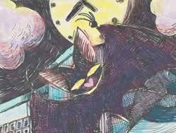 DIE ÄSTHETISCHEN Ausdrucksfor men und Medien haben gewechselt, das Malen und Schreiben sind dennoch seine bevorzugten Tätigkeiten. Im letzten Jahr hat er aber viel mit Animation gearbeitet, was perfekt zu ihm passt: „Sie ist ein fruchtbarer Treffpunkt für viele der Dinge, die ich gern tue, d.h. Text, Musik und Bild. Ich finde, dass alle Ausdrucksweisen auf ihre eigene Art und Weise interessant sind. Muss ich aber Favoriten wählen, verteilt sich mein Interesse gleichmäßig zwischen dem Malen und dem Schreiben. Dort gibt es viel, das ich noch lernen möchte.“