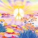 scale and I chose to combine traditional painting and digital technology to create the illustration. I decided on the familiar peace symbol to ensure that the theme of peace came through clearly in the image. I also found that Gerald Holtom’s peace sign, created for a campaign for nuclear disarmament in 1958, had maritime roots, so that tied in a fresh, new way with Åland, which is nicknamed the Islands of Peace. In order to avoid clichés, I decided to include the symbol in the form of the sun and its rays, rising over the rocky red granite cliffs of the Åland archipelago. I visited Åland as a child and I remember its natural beauty and unique atmosphere.”