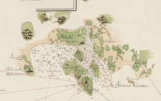 THE NAUTICAL CHART on the stamp was drawn up in 1747 by Jonas Hahn (1703-59), a Stockholm-based pilot officer who carried out maritime measure ments around Åland and southern Finland. Measurements were then made first and foremost to chart the archipelago for navy requirements, and depths were measured by sounding line and compass.