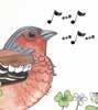 oma elämä ja persoonallisuus. Halusin, että postimerkit olisivat selkeitä ja ymmärrettäviä, sopivat lintulajien biotooppiin, mutta myös tarjoavat tarkkanäköisille pieniä ja hauskoja yksityiskohtia. Punarinta on näennäisesti sievä lintu, jolla on pikkuruinen nokka ja tikunohuet jalat. Se on mielestäni pirteä persoona. Mutta se on yllättävän määrä tietoinen tunkeilijoiden suhteen – jos se on muuttanut puutarhaasi, voit olla varma, että näet saman linnun joka kerta.