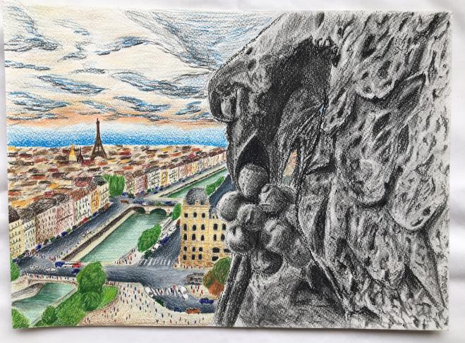 drawing of Philadelphia skyline, view from rooftop of Pennslyvania Academy of Fine Arts (2018)