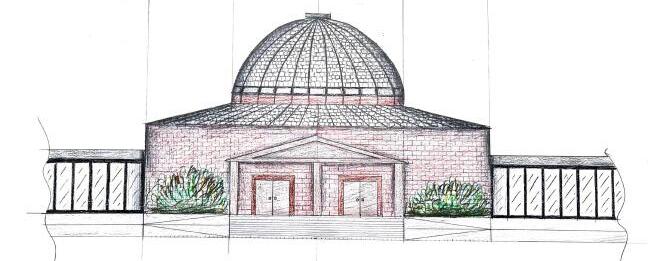 scale perspective drawing of dome in atrium / lobby