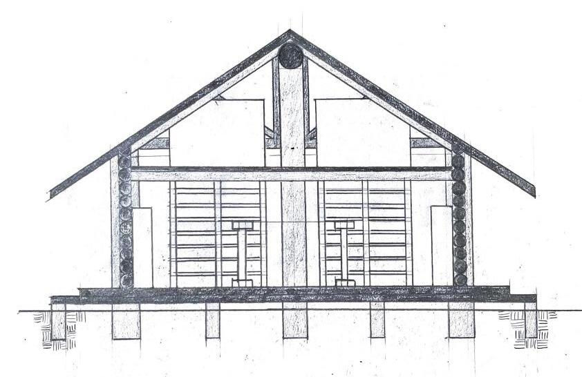 south elevation hand drawn including back entrance
