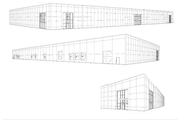 my role: modeled existing logistics facility and surrounding site to prepare for new project by using GPS and site visit imagery, created marketing set and leasing plan drawings to present to client