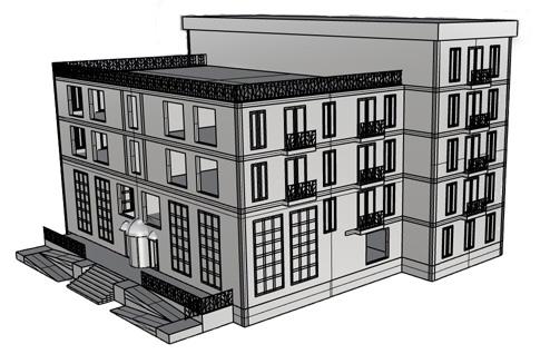 prompt: design small boutique hotel on site located in downtown Blacksburg, VA