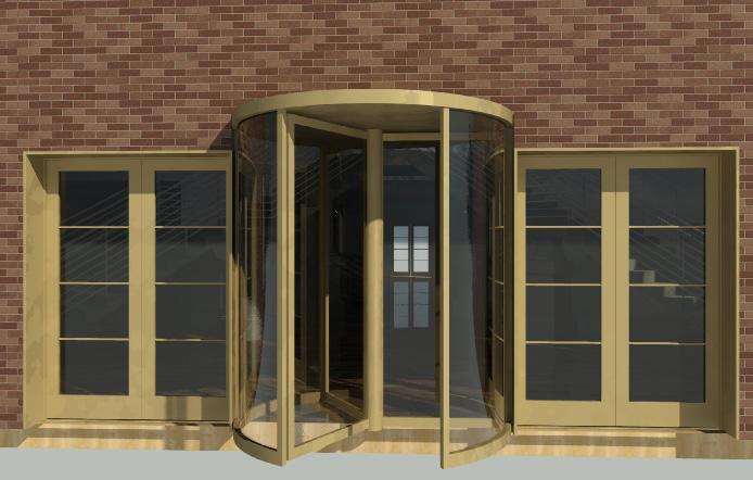 three-dimensional render hand drawn of exterior main entrance and central atrium